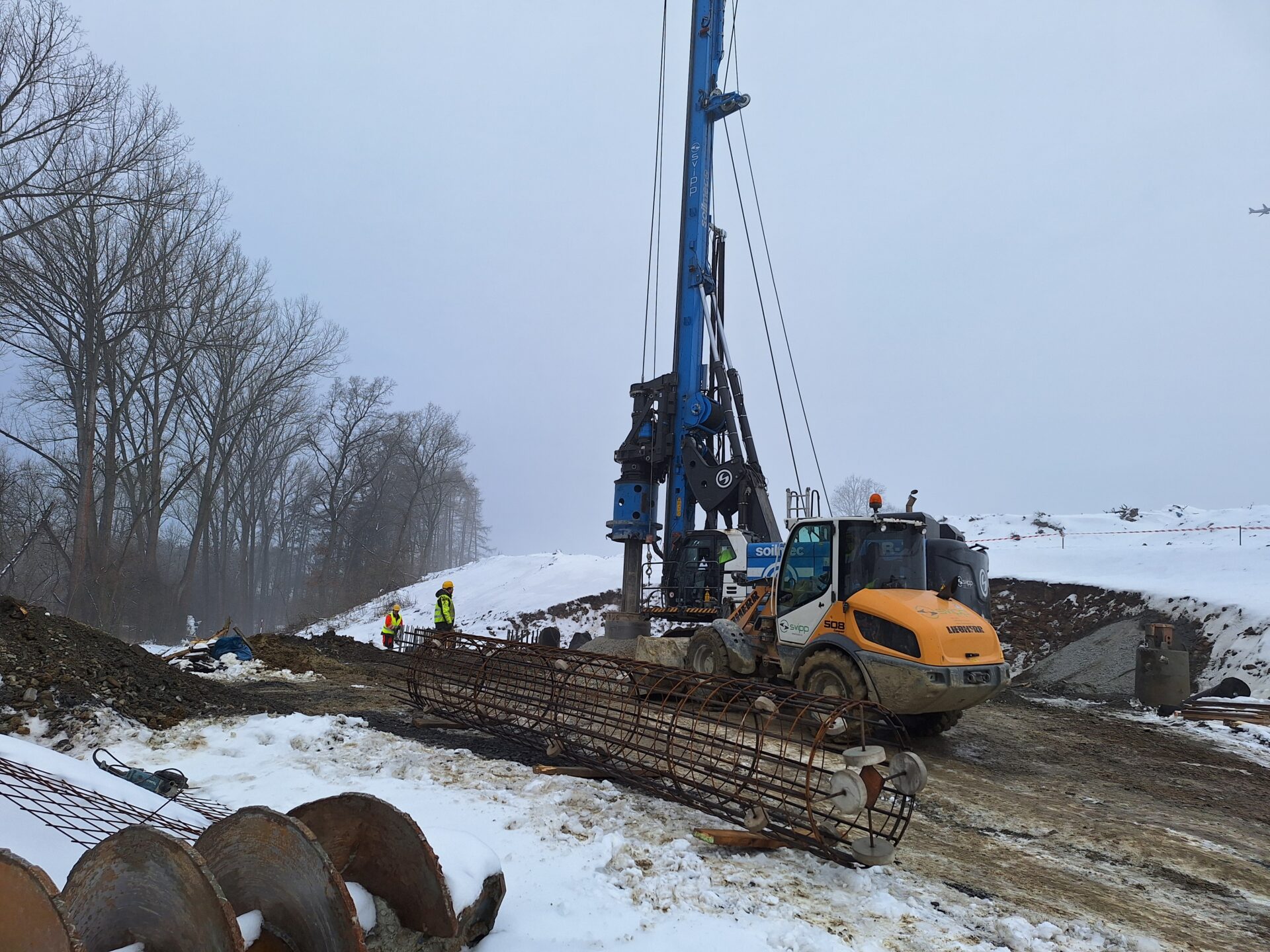 „Celkem přemístíme více než dva milionu kubíků zeminy, kterou ale využijeme přímo na místě na násypy a zemní valy. Zakládáme čtyři mosty z celkových 23 na trase. Právě pro ně vrtáme piloty do hloubky 9 až 22 metrů s průměrem 1 200 milimetrů. V provozu máme najednou 4 vrtačky vysoké jako sedmipatrový obytný dům,“ vysvětluje ředitel stavby Roman Zbořil ze společnosti Skanska.